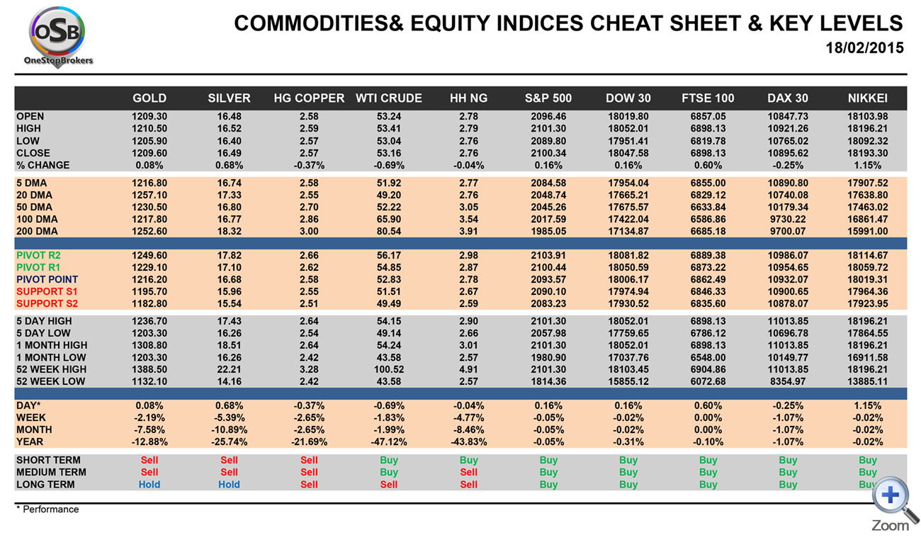 OSB Commodities & Equity Indices Cheat Sheet & Key Levels for February 18.