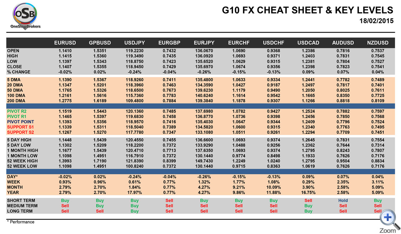 Wednesday February 18: OSB G10 Currency Pairs Cheat Sheet & Key Levels