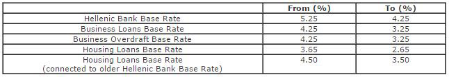 In line with its commitment to support Cypriot households and enterprises, Hellenic Bank is reducing all its base interest rates by 1%. This reduction applies to all performing and non performing loans linked to the Bank’s base interest rate.