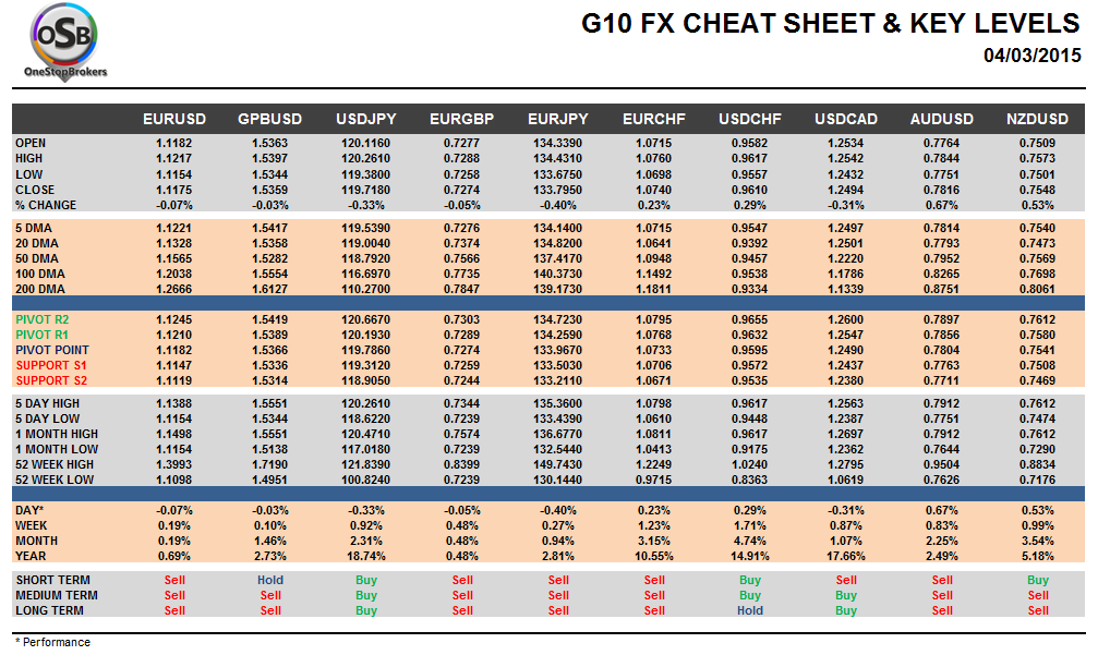 Wednesday March 04: OSB G10 Currency Pairs Cheat Sheet & Key Levels