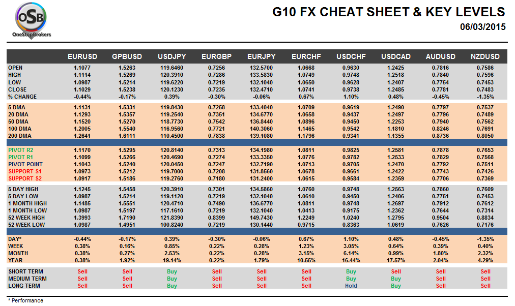 Friday March 06: OSB G10 Currency Pairs Cheat Sheet & Key Levels