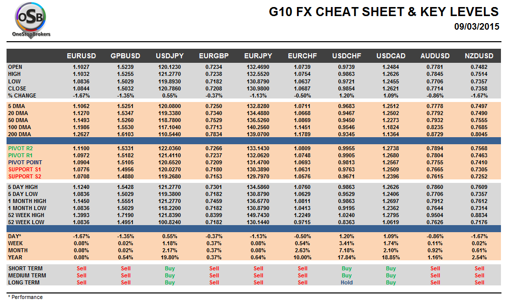 Monday March 09: OSB G10 Currency Pairs Cheat Sheet & Key Levels