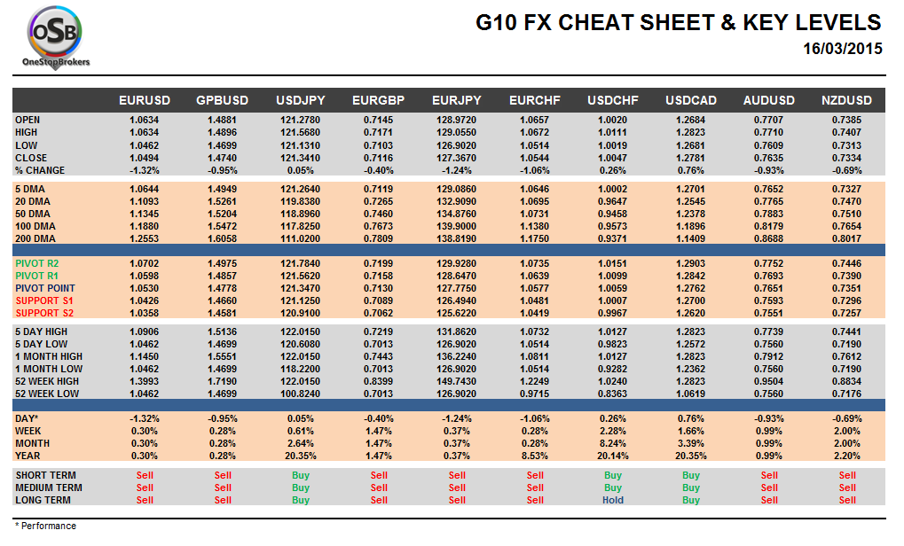 Monday March 16: OSB G10 Currency Pairs Cheat Sheet & Key Levels