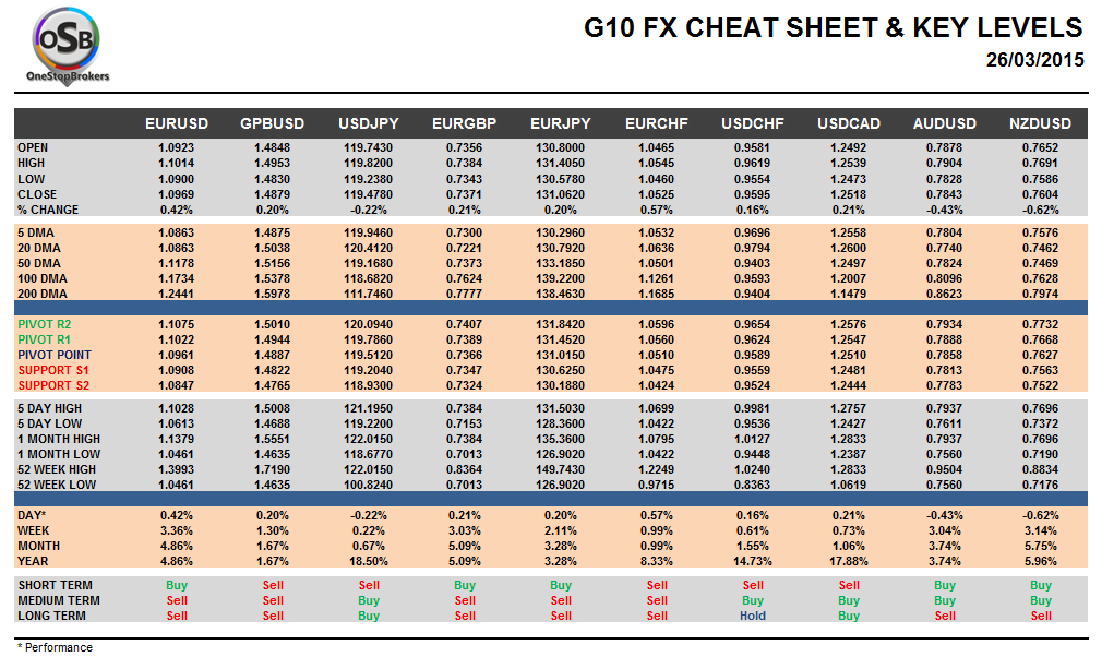 Thursday March 26: OSB G10 Currency Pairs Cheat Sheet & Key Levels