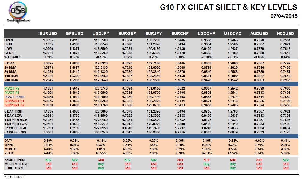 Tuesday April 07: OSB G10 Currency Pairs Cheat Sheet & Key Levels