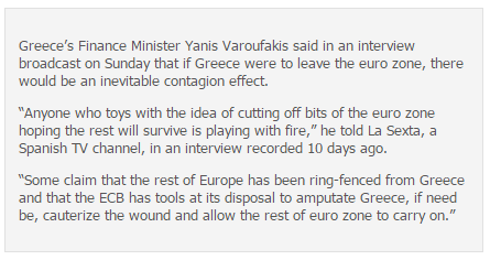 On the other hand, the Greeks believe that the risk of contagion will eventually force the Germans to back down…
