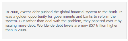 We stand on the verge of the next great global economic crisis. The lessons that we should have learned from the last crisis were never learned, and instead global debt levels have exploded much higher since then. In fact, according to Doug Casey, the total amount of global debt is 57 trillion dollars higher than it was just prior to the last crisis…
