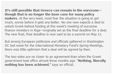 At this point, many top European officials are quietly admitting that it is more likely than not that Greece will leave the euro by the end of this year. The following is an excerpt from the Wall Street Journal article that I mentioned above…