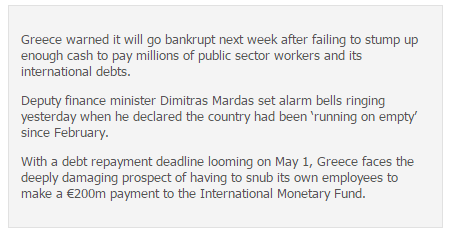 #4 As I wrote about the other day, we could be right on the verge of a Greek debt default. In fact, we learned on Thursday that the Greek government has been “running on empty” for months…