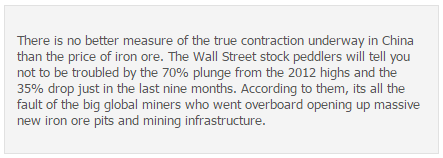 #6 The price of iron ore has been crashing as well. It is down 35 percent in the last nine months, and David Stockman believes that this is because of a major deflationary crisis that is brewing in China…