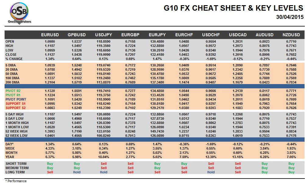 Thursday April 30: OSB G10 Currency Pairs Cheat Sheet & Key Levels