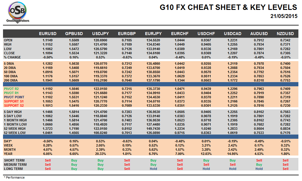Thursday May 21: OSB G10 Currency Pairs Cheat Sheet & Key Levels