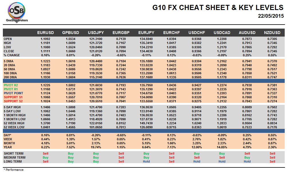 Friday May 22: OSB G10 Currency Pairs Cheat Sheet & Key Levels