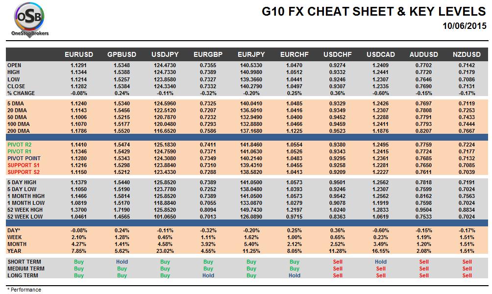 OSB Daily G10 Currency Pairs Cheat Sheet & Key Levels for June 10.