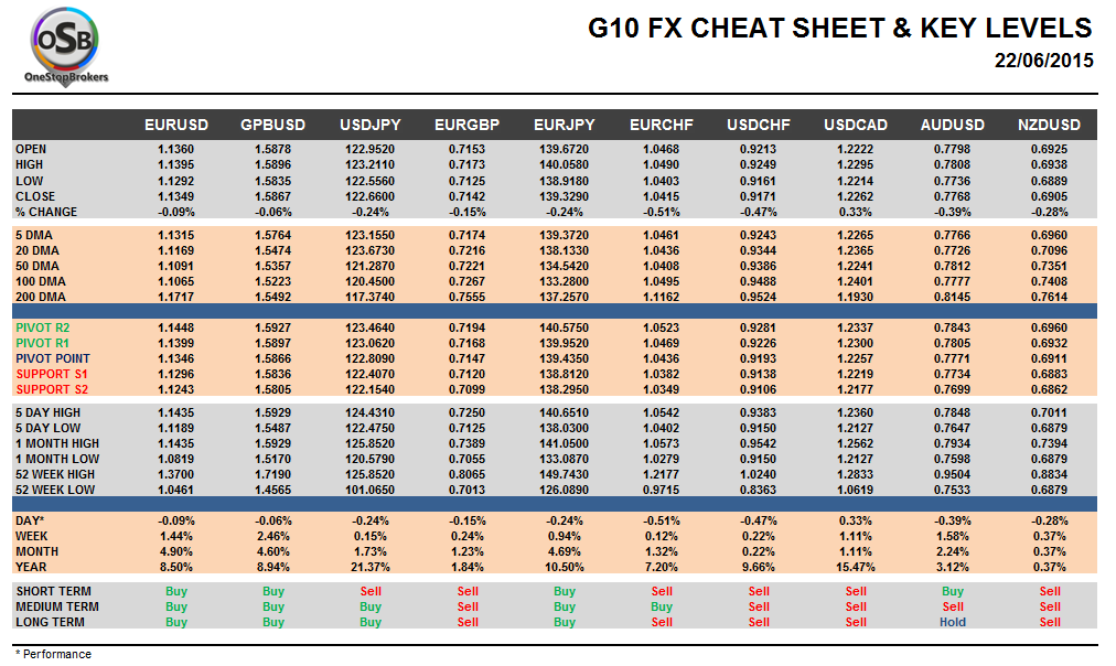 OSB Daily G10 Currency Pairs Cheat Sheet & Key Levels for June 22.