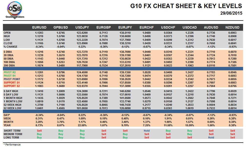 OSB Daily G10 Currency Pairs Cheat Sheet & Key Levels for June 29.