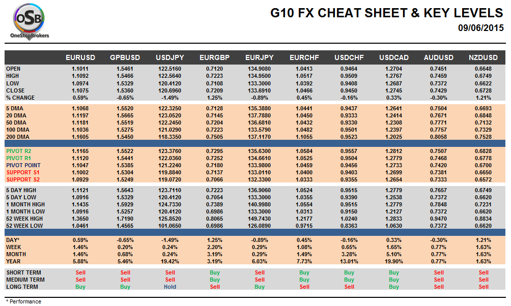Thursday July 09: OSB G10 Currency Pairs Cheat Sheet & Key Levels
