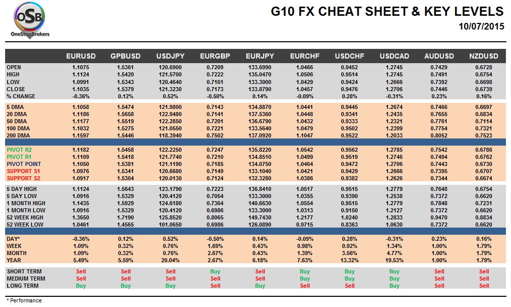 Friday July 10: OSB G10 Currency Pairs Cheat Sheet & Key Levels