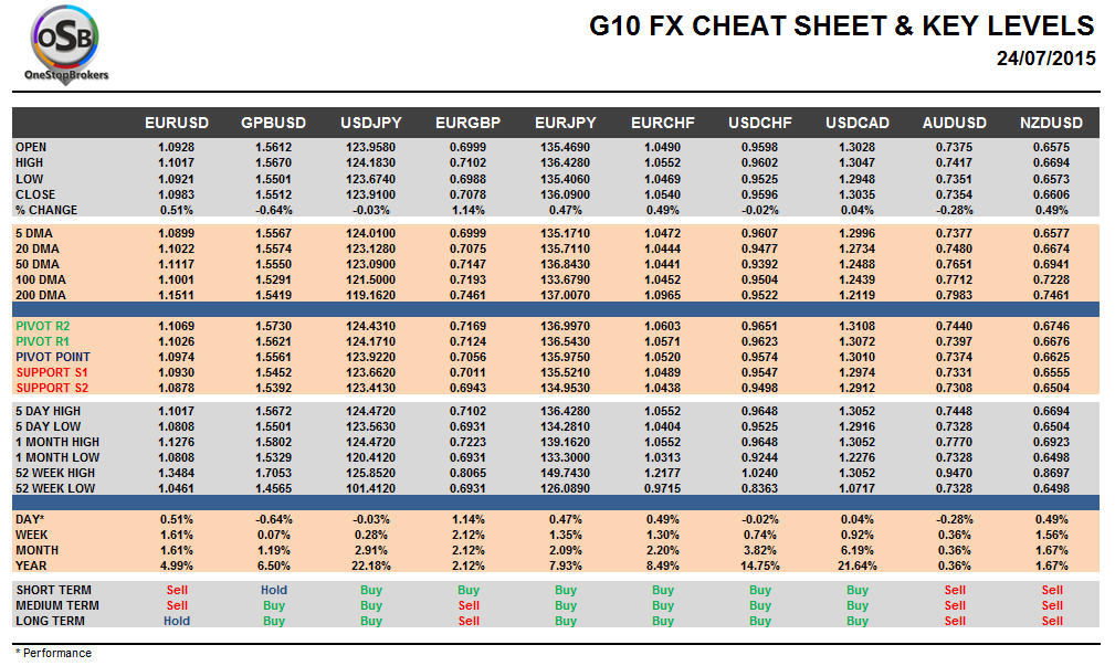 Friday July 24: OSB G10 Currency Pairs Cheat Sheet & Key Levels