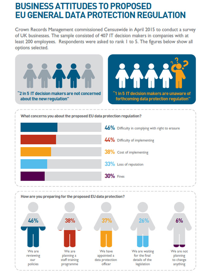 At Crown Records Management we recently commissioned a Census wide survey to assess what people knew about the Regulation and what they were doing to prepare for it.