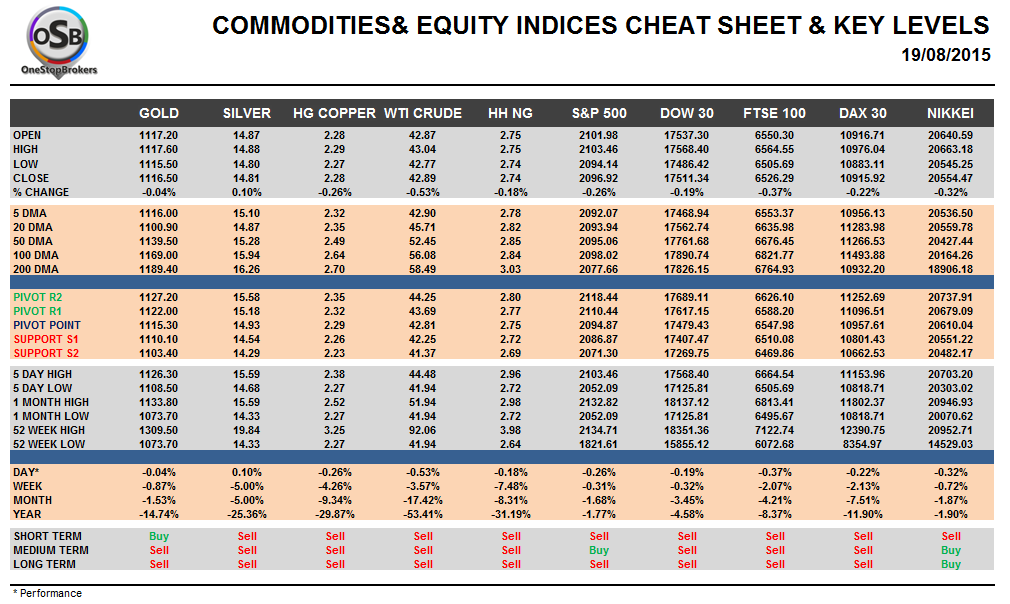 Wednesday August 19: OSB Commodities & Equity Indices Cheat Sheet & Key Levels