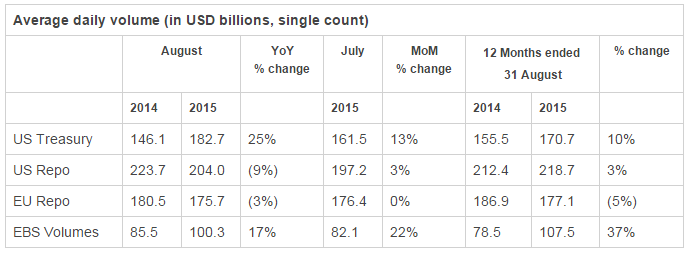 Source: ICAP – ICAP Electronic Markets Volumes – August 2015