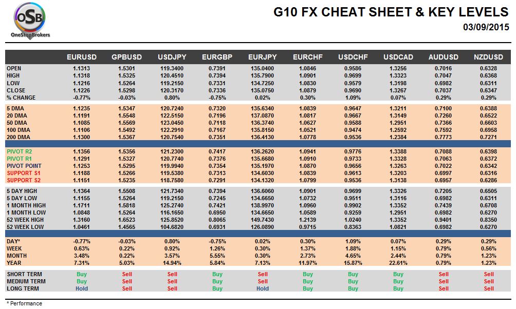 G10 Cheat Sheet & Key Levels 03-09-2015