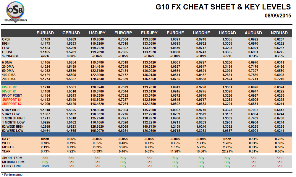 Tuesday September 08: OSB G10 Currency Pairs Cheat Sheet & Key Levels