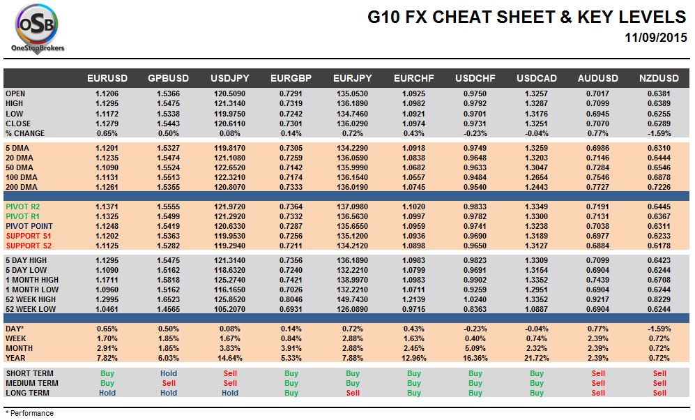 G10 FX Cheat Sheet & Key Levels 11-09-2015
