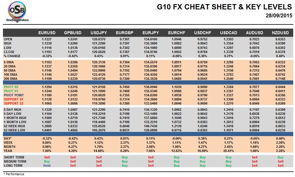 G10 FX Cheat Sheet & Key Levels 28-09-2015