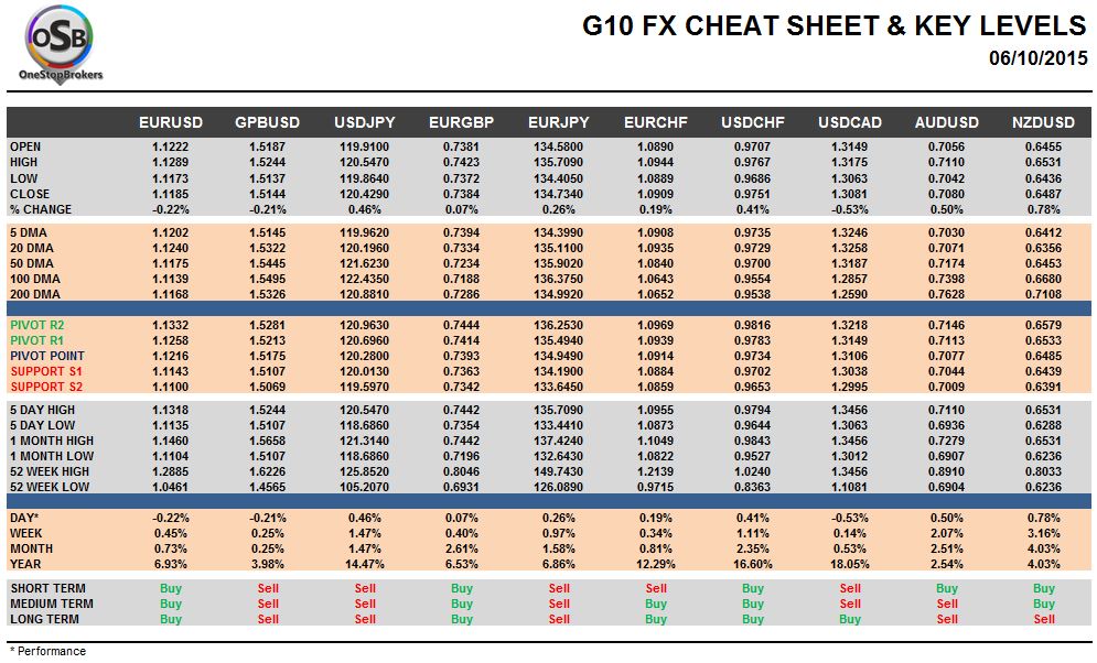 G10 FX Cheat Sheet & Key Levels 06-10-2015
