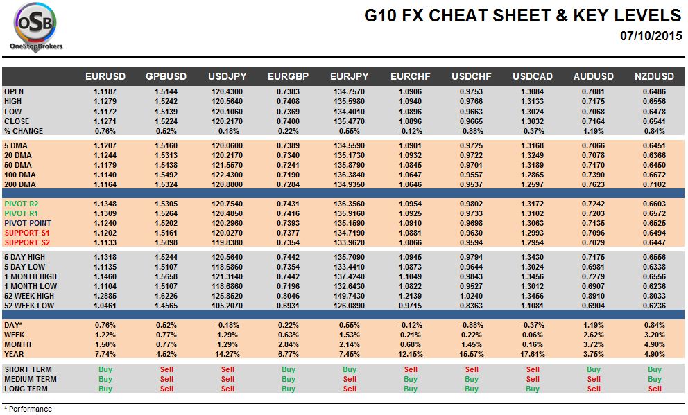 G10 FX Cheat Sheet & Key Levels 07-10-2015
