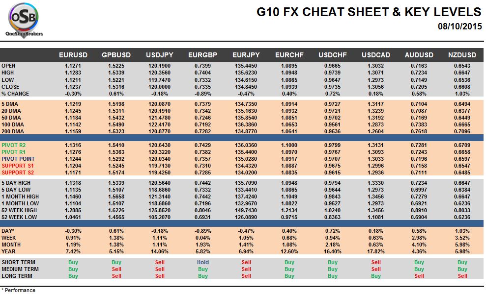 G10 FX Cheat Sheet & Key Levels 08-10-2015