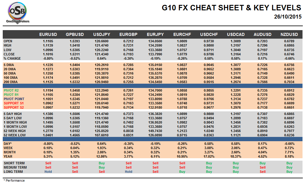 OSB Daily G10 Currency Pairs Cheat Sheet & Key Levels for October 26.