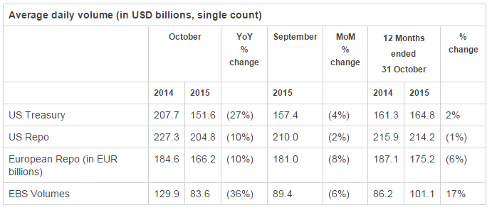 Source: ICAP – ICAP Electronic Markets Volumes – October 2015