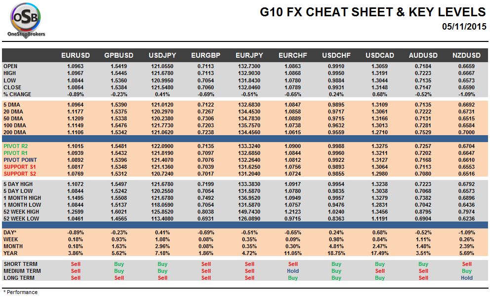 G10 FC Cheat Sheet & Key Levels 05-11-2015