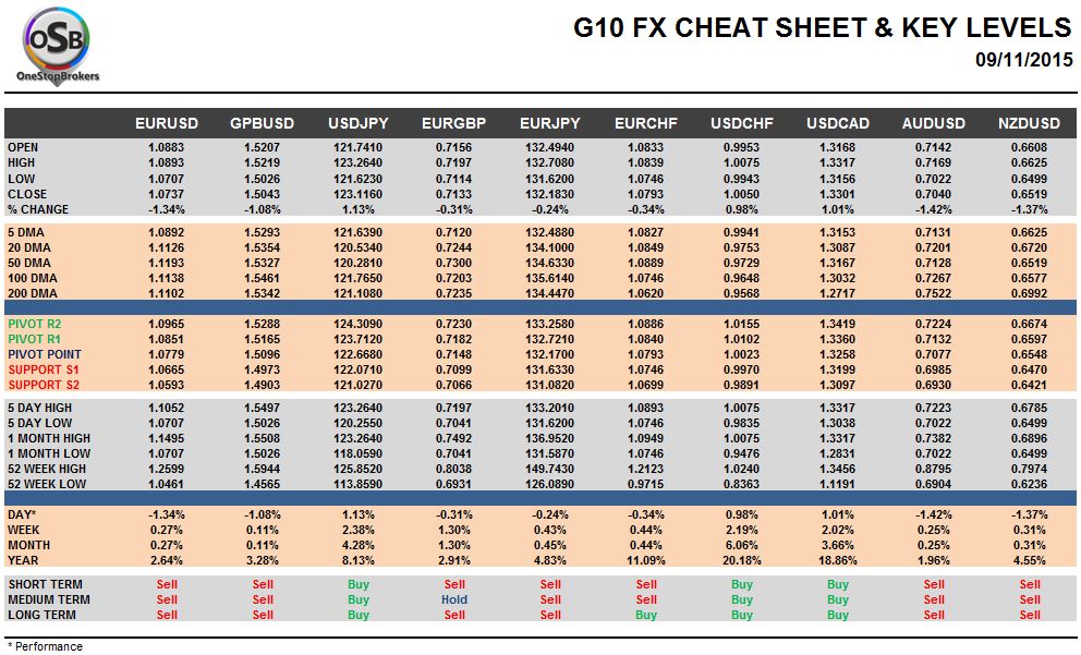 G10 FX Cheat Sheet & Key Levels 09-11-2015