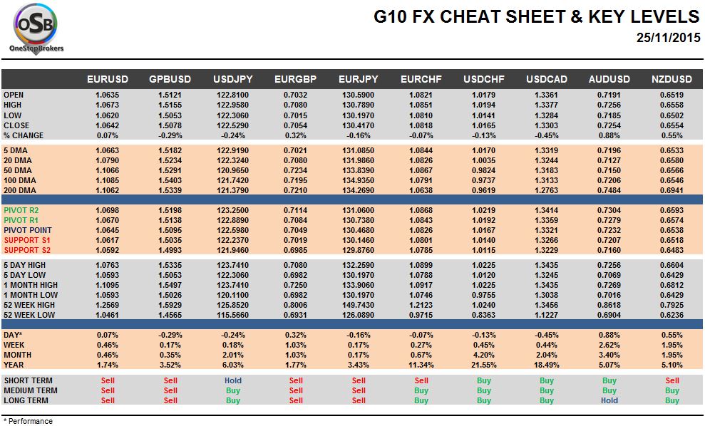 G10 FX Cheat Sheet & Key Levels 25-11-2015