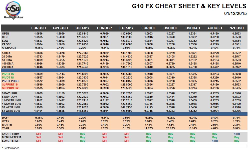 G10 FX Cheat Sheet & Key Levels 01-12-2015
