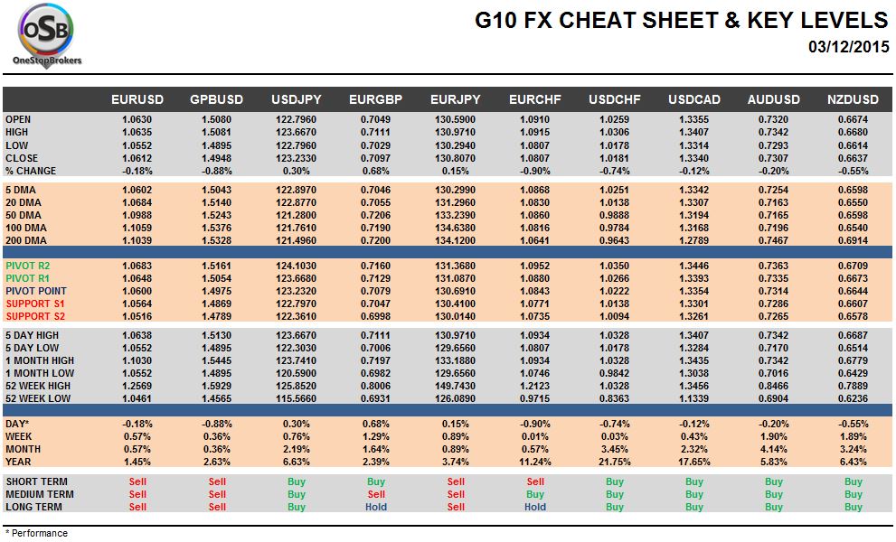 G10 FX Cheat Sheet & Key Levels 03-12-2015