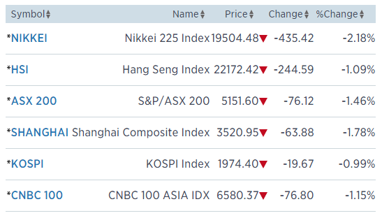 Source: CNBC – Asian markets close on three-week lows, weighed by ECB, Fed