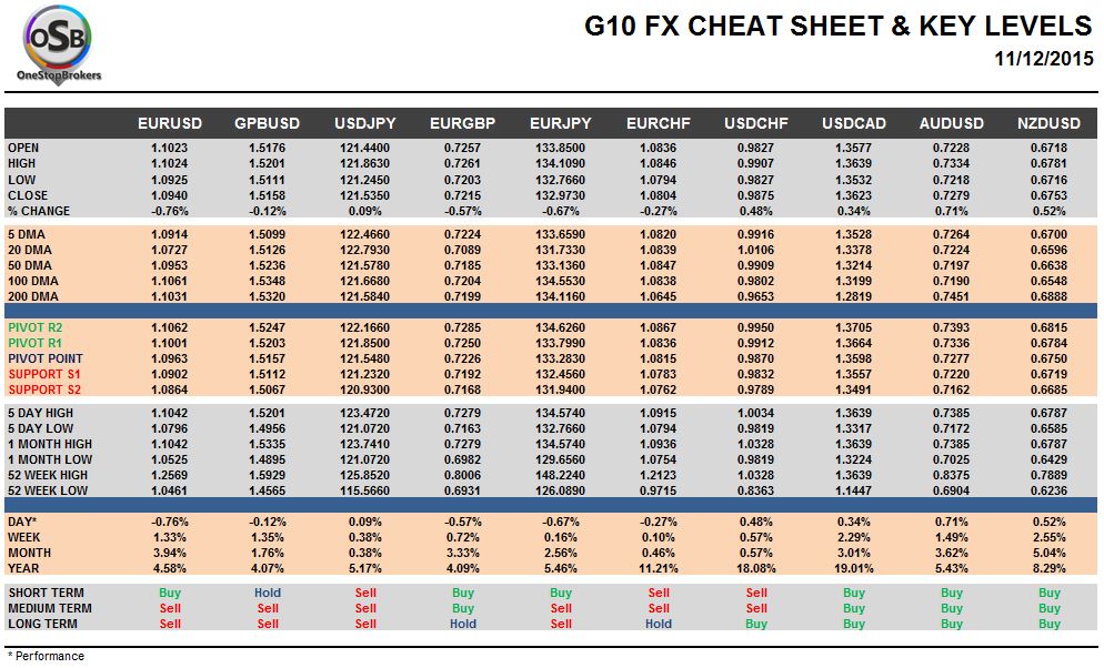 G10 FX Cheat Sheet & Key Levels 11-12-2015