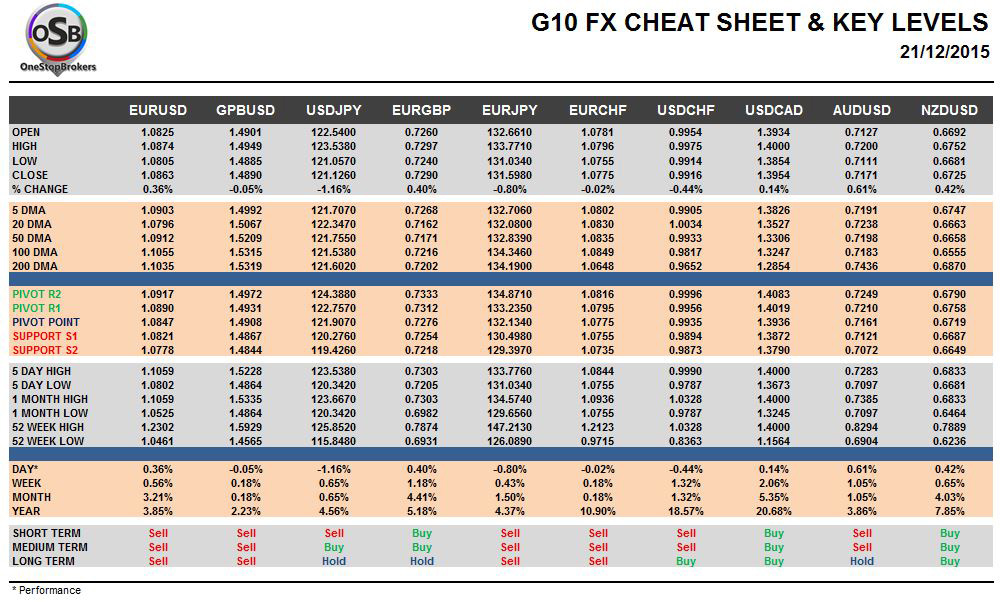 Monday, December 21: OSB G10 Currency Pairs Cheat Sheet & Key Levels