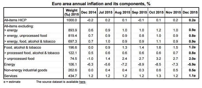 Euro area annual inflation is expected to be 0.2% in December 2015, stable compared to November 2015, according to a flash estimate from Eurostat, the statistical office of the European Union.