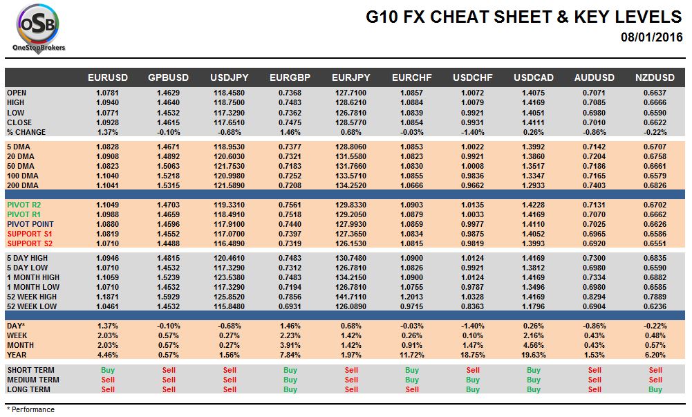 Friday, January 08: OSB G10 Currency Pairs Cheat Sheet & Key Levels