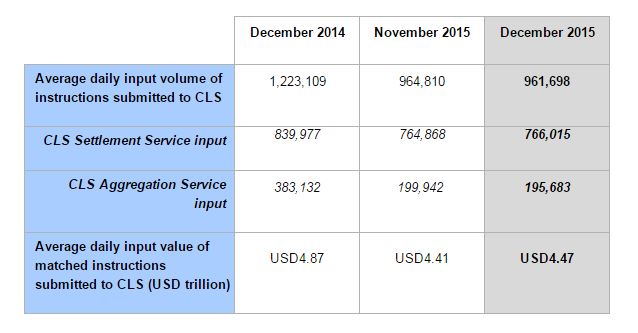 CLS has issue a report to make publish its monthly volumes for December 2015.