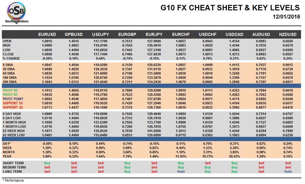 Tuesday, January 12: OSB G10 Currency Pairs Cheat Sheet & Key Levels