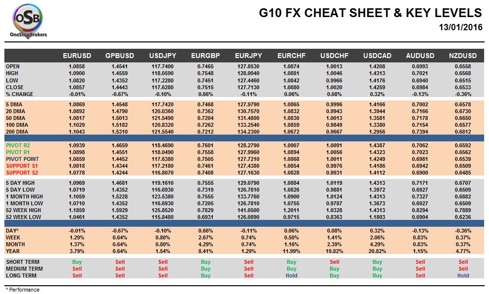 Wednesday, January 13: OSB G10 Currency Pairs Cheat Sheet & Key Levels