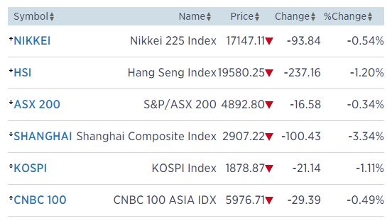 Source: CNBC – Asia stocks retrace gains; Shanghai tumbles 3.7%