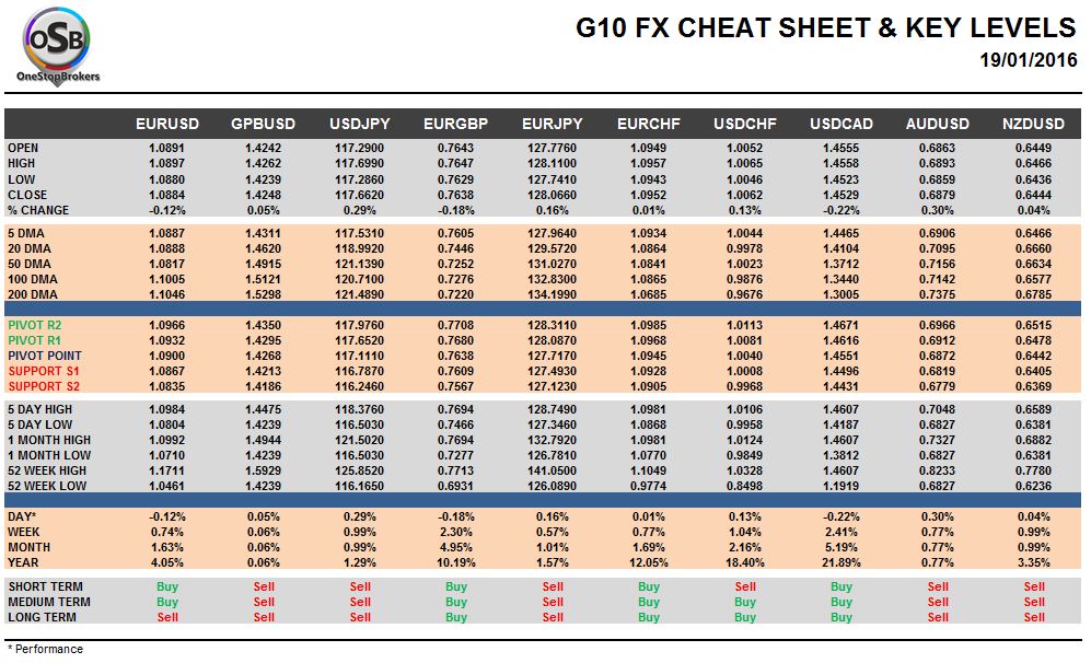 Tuesday, January 19: OSB G10 Currency Pairs Cheat Sheet & Key Levels